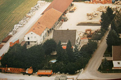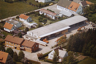 Alles begann in Obermeitingen in der Hausnummer 61 ½, der heutigen Lagerhausstrasse 12 mit einer kleinen Halle, die nach und nach bis zum heutigen Stand erweitert wurde. Damals musste noch alles per Hand auf- und abgeladen werden. Mit der Hilfe von Nachbarn wurde zentnerweise Zement und tausende Dachplatten ent- und wieder verladen. Eine enorm harte Arbeit, die sich heute kaum mehr jemand vorstellen kann.